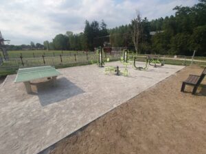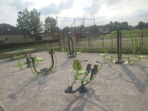 Création d’un zone de Fitness plein air, située entre le parc de jeu et le demi terrain de basketball.